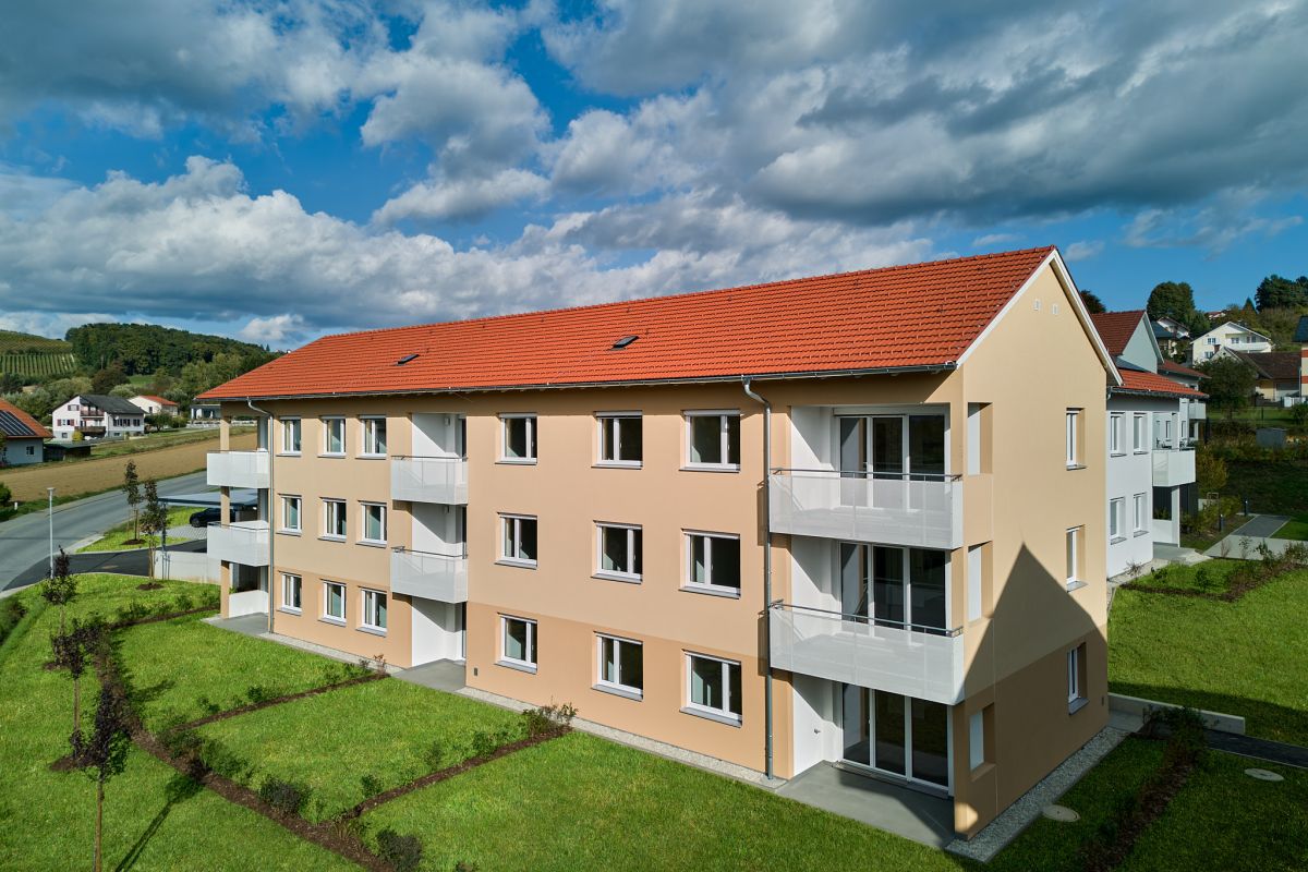 Die elf landesgeförderten Mietwohnungen befinden sich in einem dreigeschossigen L-Haus. Die Größe der Zwei- bis Vier-Zimmer-Wohnungen bewegt sich zwischen 54 bis 89 Quadratmetern. Die Wohnungen zeichnen sich durch gut durchdachte Grundrisse aus und bieten den Bewohnerinnen und Bewohnern neben einer geräumigen Wohnfläche innen auch einen Balkon oder eine Terrasse mit einer zugeordneten Gartenfläche. Alle Wohnungen sind ebenso mit einer Küche inklusive der Elektrogeräte ausgestattet. Jeder Wohnung wird zudem ein Kellerabteil zur Verfügung stehen, das zusätzlichen Stauraum bietet. Je Wohnung ist ein überdachter Pkw-Abstellplatz inkludiert.