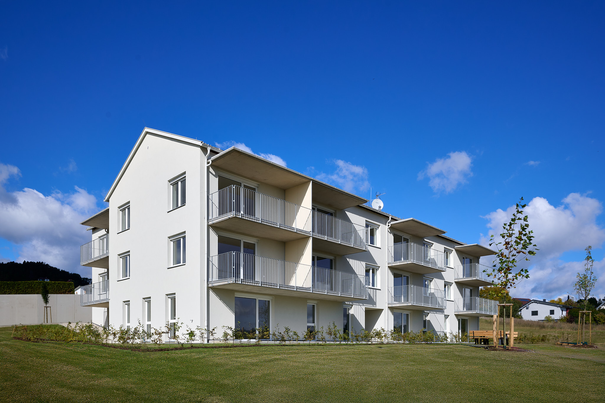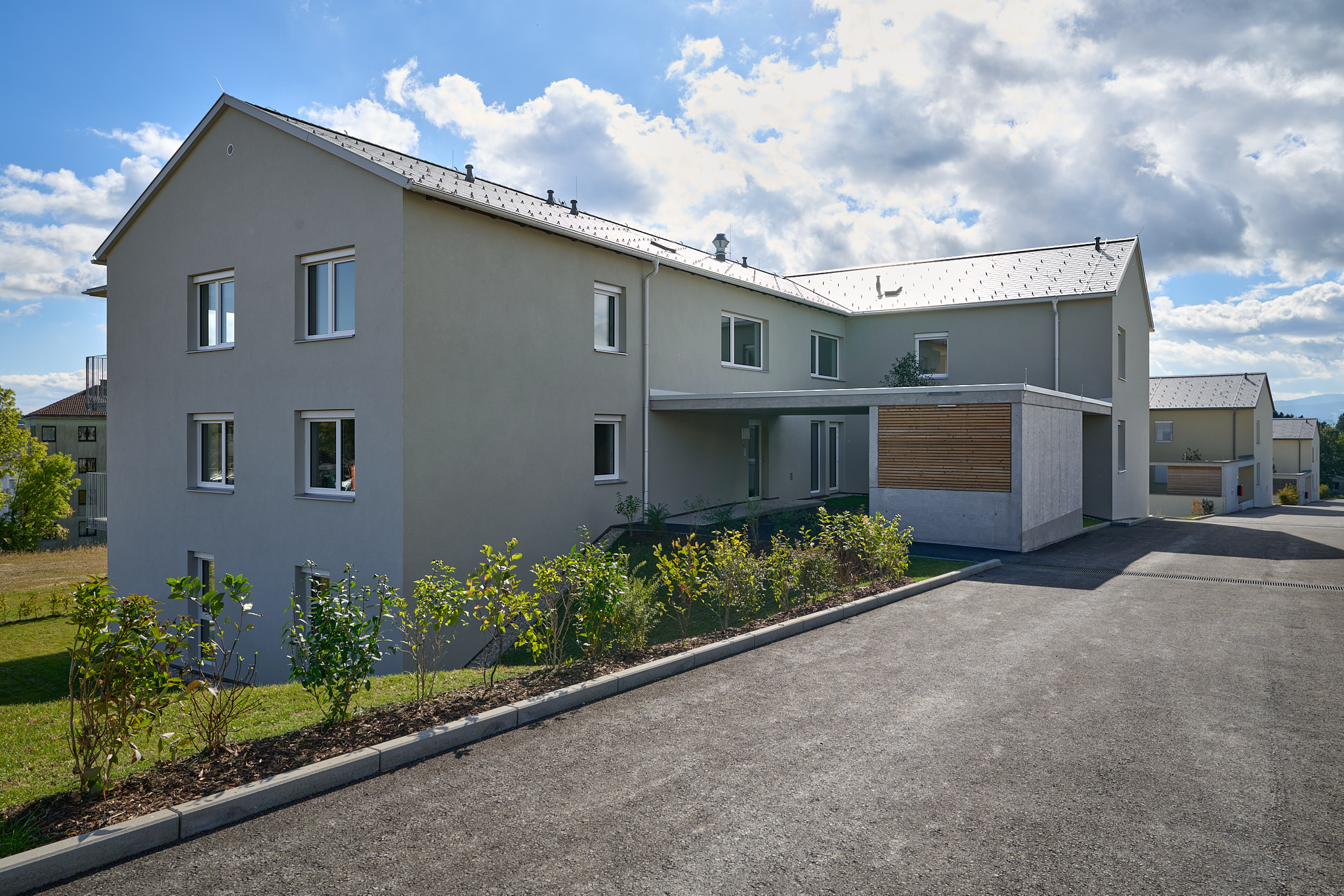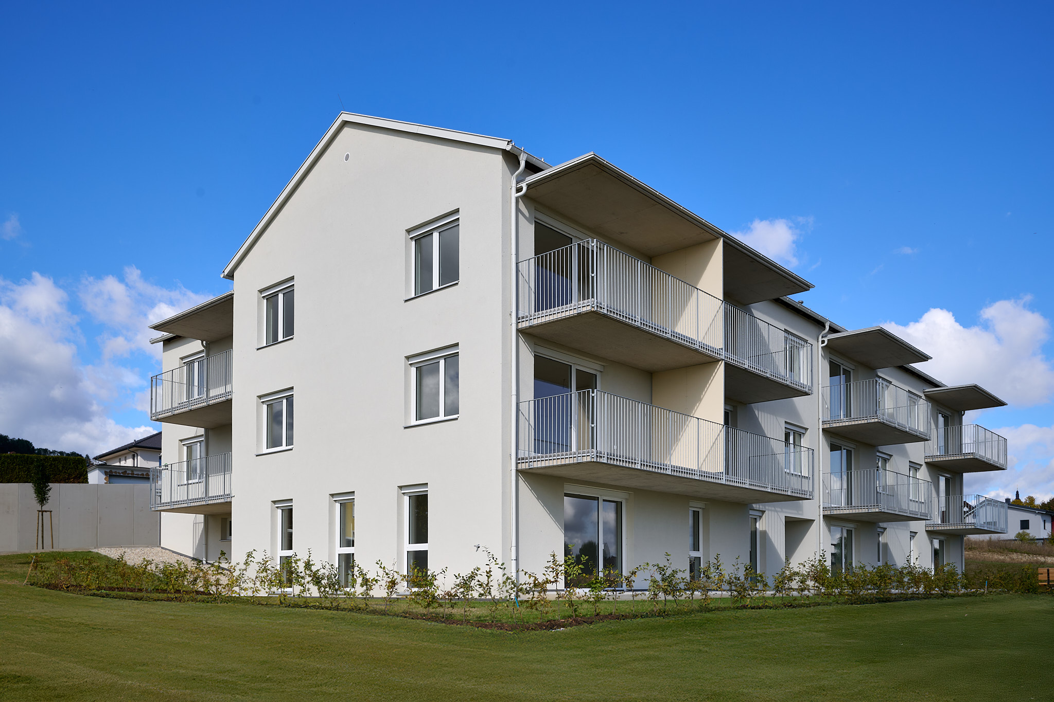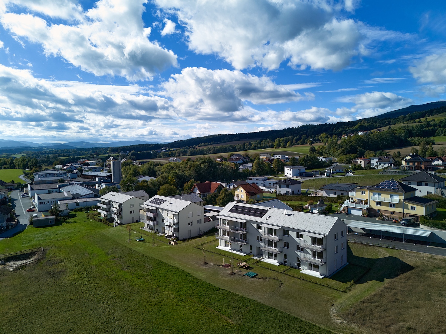 Das dritte Gebäude in der Bahnhofsiedlung wurde nun an die neuen Bewohner:innen übergeben. Entstanden sind hier 13 landesgeförderte Mietwohnungen. Die Größe der Zwei- bis Vier-Zimmer-Wohnungen bewegt sich zwischen 53 bis 89 Quadratmetern. Jede der Wohnungen verfügt über einen Balkon oder Terrasse sowie zugeordnete Gartenflächen. Alle Wohnungen sind mit einer Küche inklusive der Elektrogeräte ausgestattet. Den Bewohner:innen steht zudem ein Kellerabteil zur Verfügung, das zusätzlichen Stauraum bietet. Je Wohnung ist ein überdachter Pkw-Abstellplatz inkludiert. Ebenso sind Besucher:innenparkplätze bei dem Wohnprojekt vorhanden.