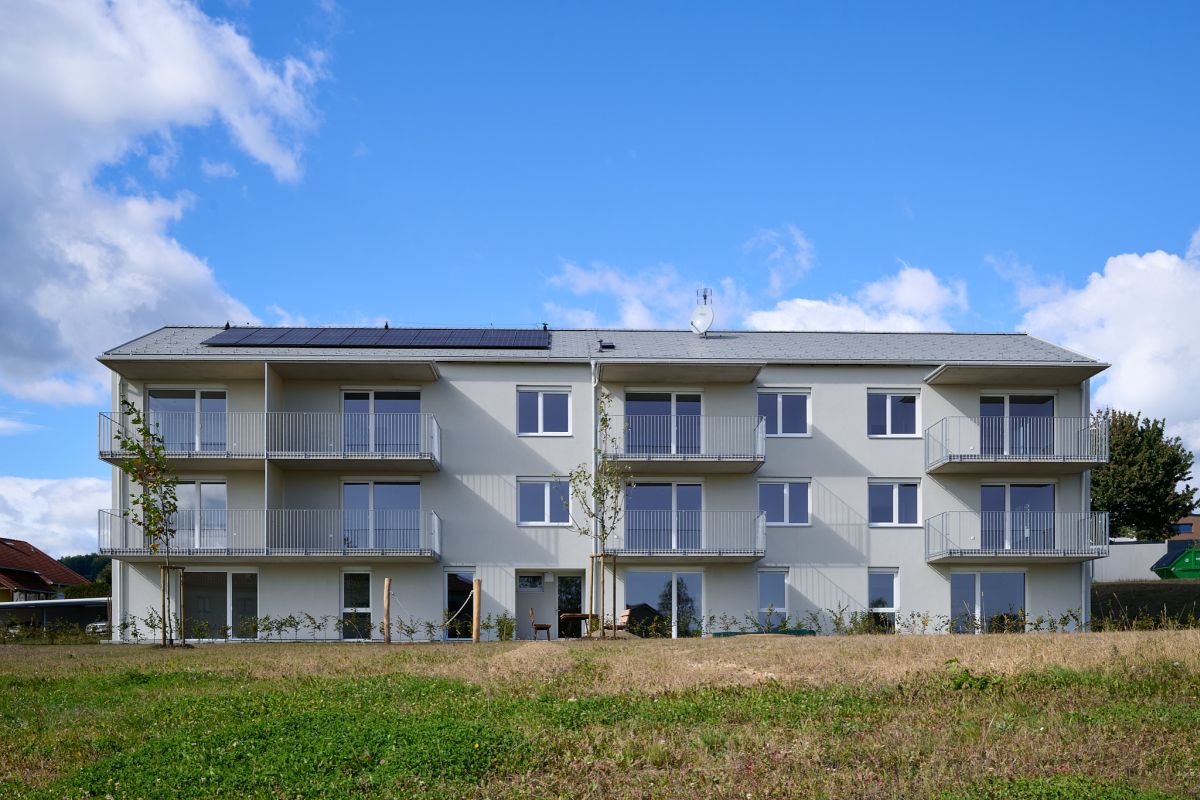 Das dritte Gebäude in der Bahnhofsiedlung wurde nun an die neuen Bewohner:innen übergeben. Entstanden sind hier 13 landesgeförderte Mietwohnungen. Die Größe der Zwei- bis Vier-Zimmer-Wohnungen bewegt sich zwischen 53 bis 89 Quadratmetern. Jede der Wohnungen verfügt über einen Balkon oder Terrasse sowie zugeordnete Gartenflächen. Alle Wohnungen sind mit einer Küche inklusive der Elektrogeräte ausgestattet. Den Bewohner:innen steht zudem ein Kellerabteil zur Verfügung, das zusätzlichen Stauraum bietet. Je Wohnung ist ein überdachter Pkw-Abstellplatz inkludiert. Ebenso sind Besucher:innenparkplätze bei dem Wohnprojekt vorhanden.