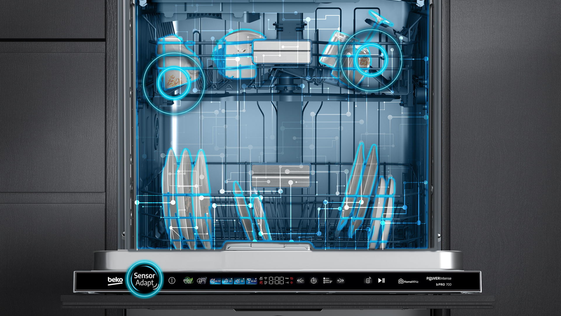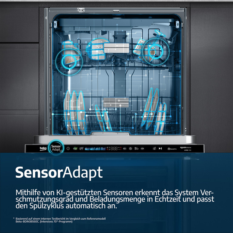Die neue Beko Geschirrspüler-Plattform vereint modernste Reinigungstechnologie mit künstlicher Intelligenz. Ihr Herzstück, die SensorAdapt-Technologie, analysiert in Echtzeit Beladungsmenge und Verschmutzungsgrad und passt Spülparameter automatisch an. So werden Wasser, Energie und Reinigungsmittel nur in dem Maß eingesetzt, wie sie tatsächlich benötigt werden.
