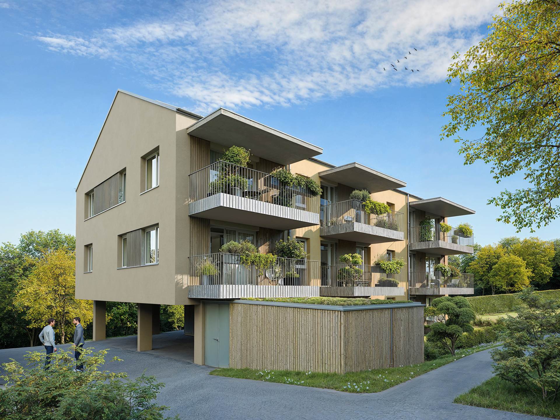 Die Zwei- bis Vier-Zimmer-Wohnungen werden zwischen 52 und 89 Quadratmetern groß sein. Acht von den insgesamt 25 Wohneinheiten werden als Maisonette-Wohnungen ausgeführt. Alle Wohnungen überzeugen durch gut durchdachte und funktionale Grundrisse aus und bieten Balkone oder Terrassen mit einer zugeordneten Gartenfläche. Zudem werden alle Wohneinheiten mit einer komfortablen Fußbodenheizung sowie mit Einbauküchen inklusive der Elektrogeräte ausgestattet. Darüber hinaus wird jeder Wohnung ein überdachter Parkplatz zugeordnet, zusätzlich werden Besucher:innenparkplätze zur Verfügung stehen.