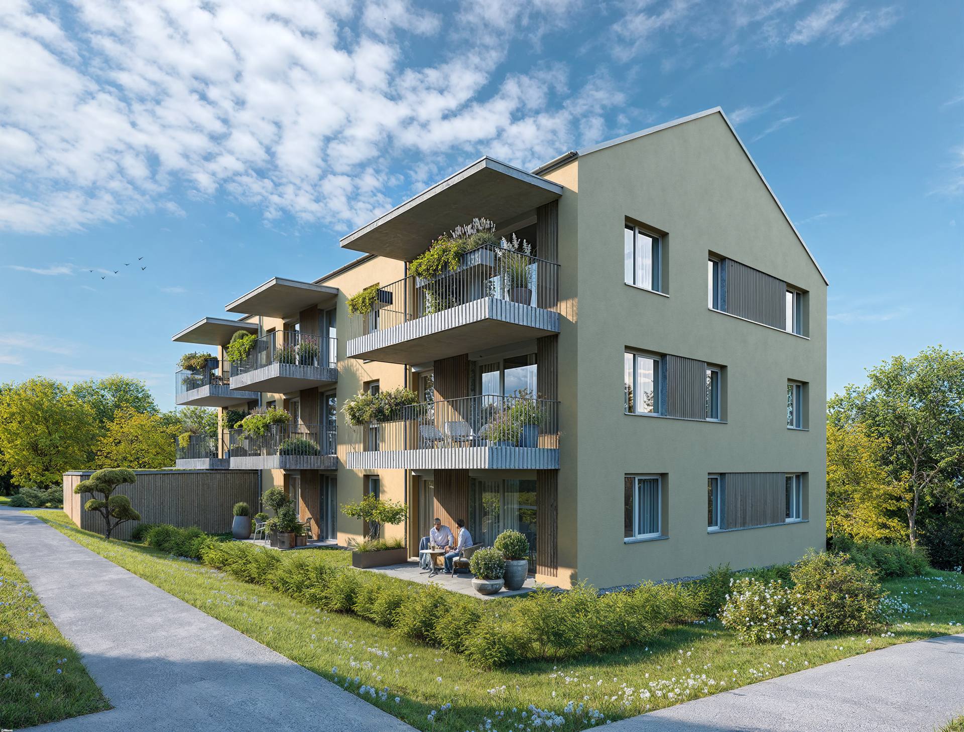 Geplant von Schwarz Platzer Architekten entstehen in Lannach vier zwei- bis dreigeschossige Gebäude mit Satteldach in Massivbauweise. Die Architektur überzeugt durch eine klare, moderne Formensprache. Das Projekt zeichnet sich vor allem durch seine Nachhaltigkeit aus. So werden viele Holzelemente zum Einsatz kommen. Für eine umweltfreundliche Energieversorgung wird zudem eine Photovoltaik-Anlage auf den Dächern errichtet. Darüber hinaus wird es für künftige Bewohner:innen die Möglichkeit für Ladestationen für E-Mobilität geben.