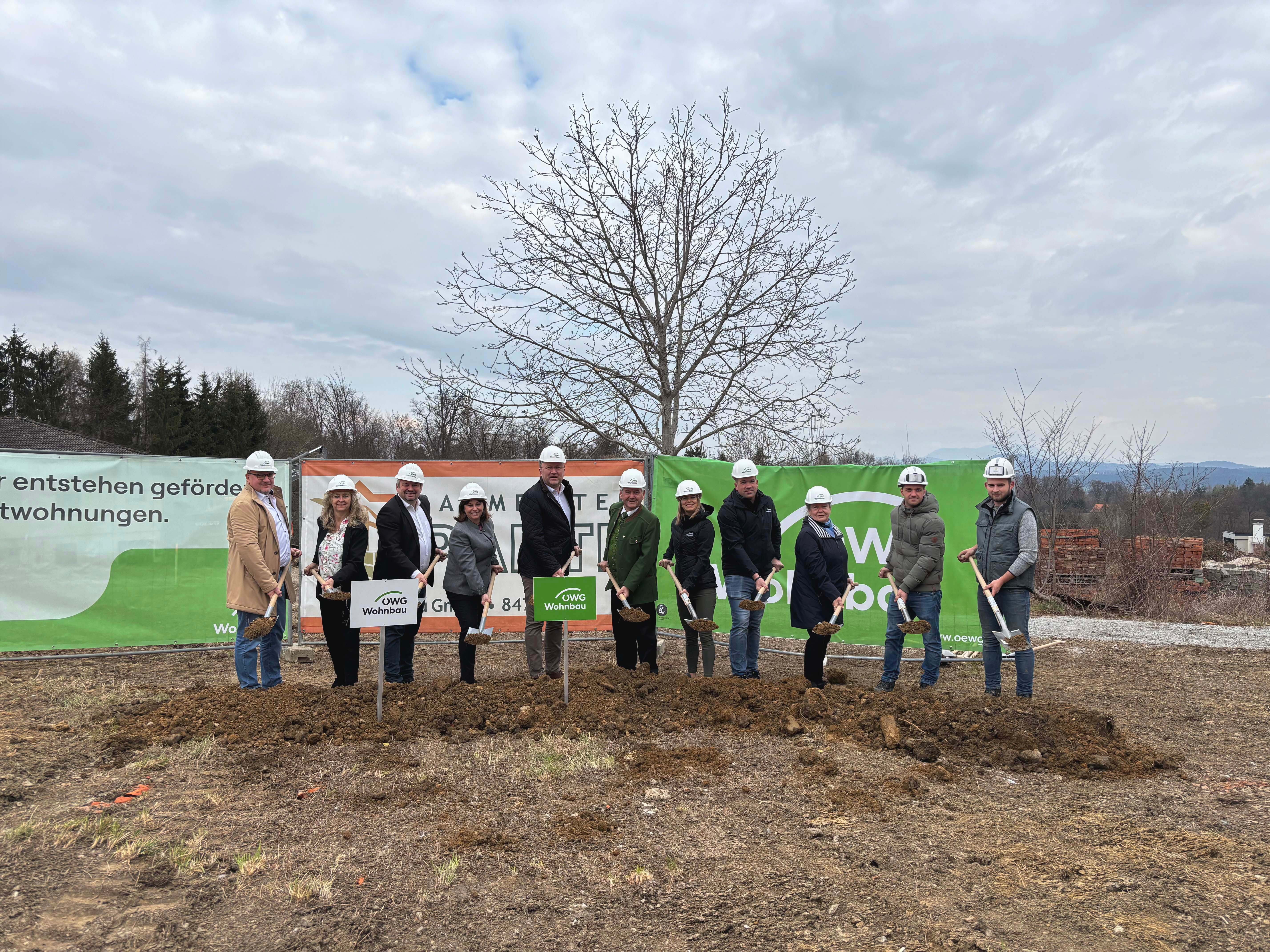 ÖWG Wohnbau schafft seit über 75 Jahren attraktiven und leistbaren Wohnraum. Dieses Engagement wird nun auch in Lannach fortgesetzt. Am 23. März 2026 erfolgte der feierliche Spatenstich für insgesamt 25 geförderten Mietwohnungen. Mit dabei waren Bürgermeister Josef Niggas, Vertreter:innen der Gemeinde und von ÖWG Wohnbau. Das Wohnprojekt in der Hauptstraße 82, 82a, 82 b und 82 c steht unter dem Motto „Raum für Familien“, denn acht der Wohnungen werden als Maisonette-Wohnungen ausgeführt. Die Fertigstellung aller vier Gebäude ist für den Herbst 2027 geplant.