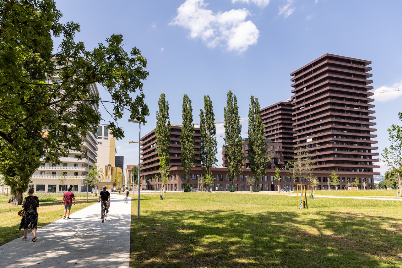 „Die Erde hat sich in den letzten 25 Jahren weitergedreht – und mit ihr die Rahmenbedingungen für Stadtentwicklung. Dabei zeigt sich, dass ein vollständiger Ausschluss des motorisierten Individualverkehrs nicht automatisch zu einem lebendigen Stadtteil führt. Gleichzeitig stellt der Onlinehandel den stationären Handel vor große Herausforderungen. Handel und Gastronomie sind daher auf eine praktikable Erreichbarkeit angewiesen. Ein lebendiger Stadtteil braucht funktionierende Betriebe vor Ort. Oberirdische Kurzparkmöglichkeiten können dabei ein wichtiger Baustein sein, um lokale Unternehmen zu stärken, ohne die Qualitäten eines verkehrsberuhigten Quartiers zu verlieren“, ergänzt DI Hans Schaffer, Vorstandsdirektor von ÖWG Wohnbau.